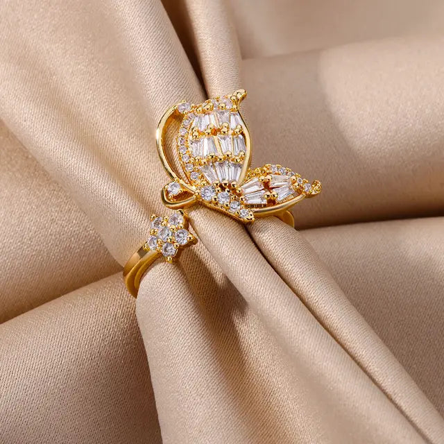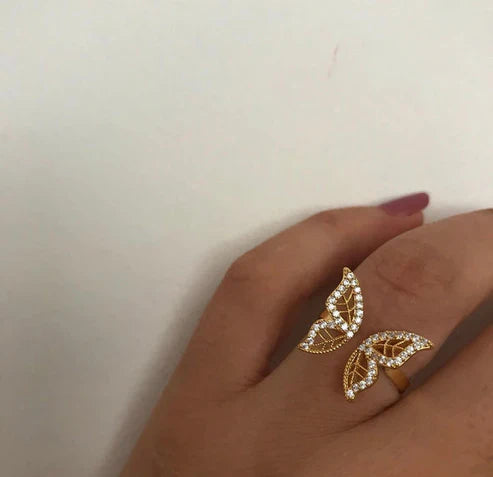 - Adjustable ring adorned with a sparkling cubic zirconia butterfly motif