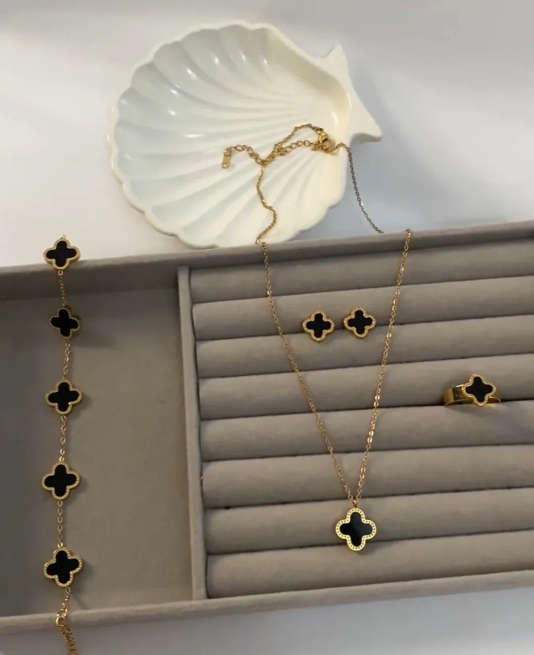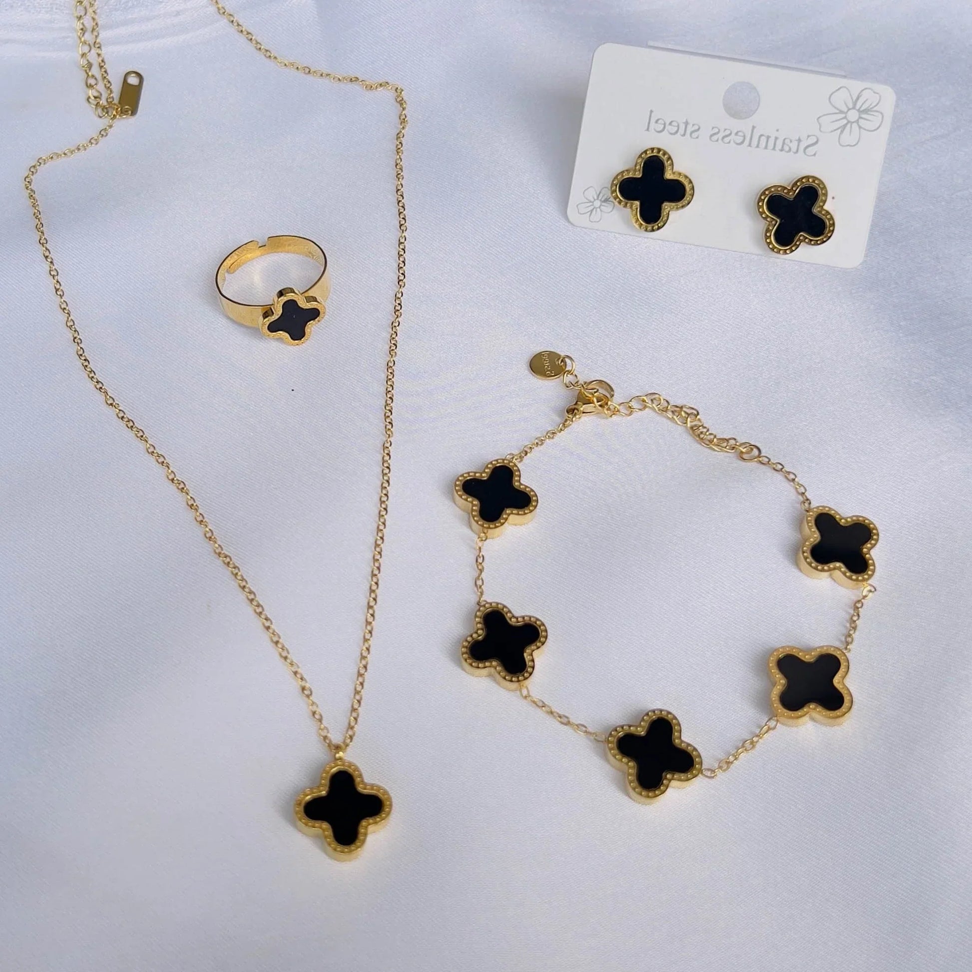 - Black Clover Jewelry Set Include Ring, Necklace, Bracelet and Earrings.
