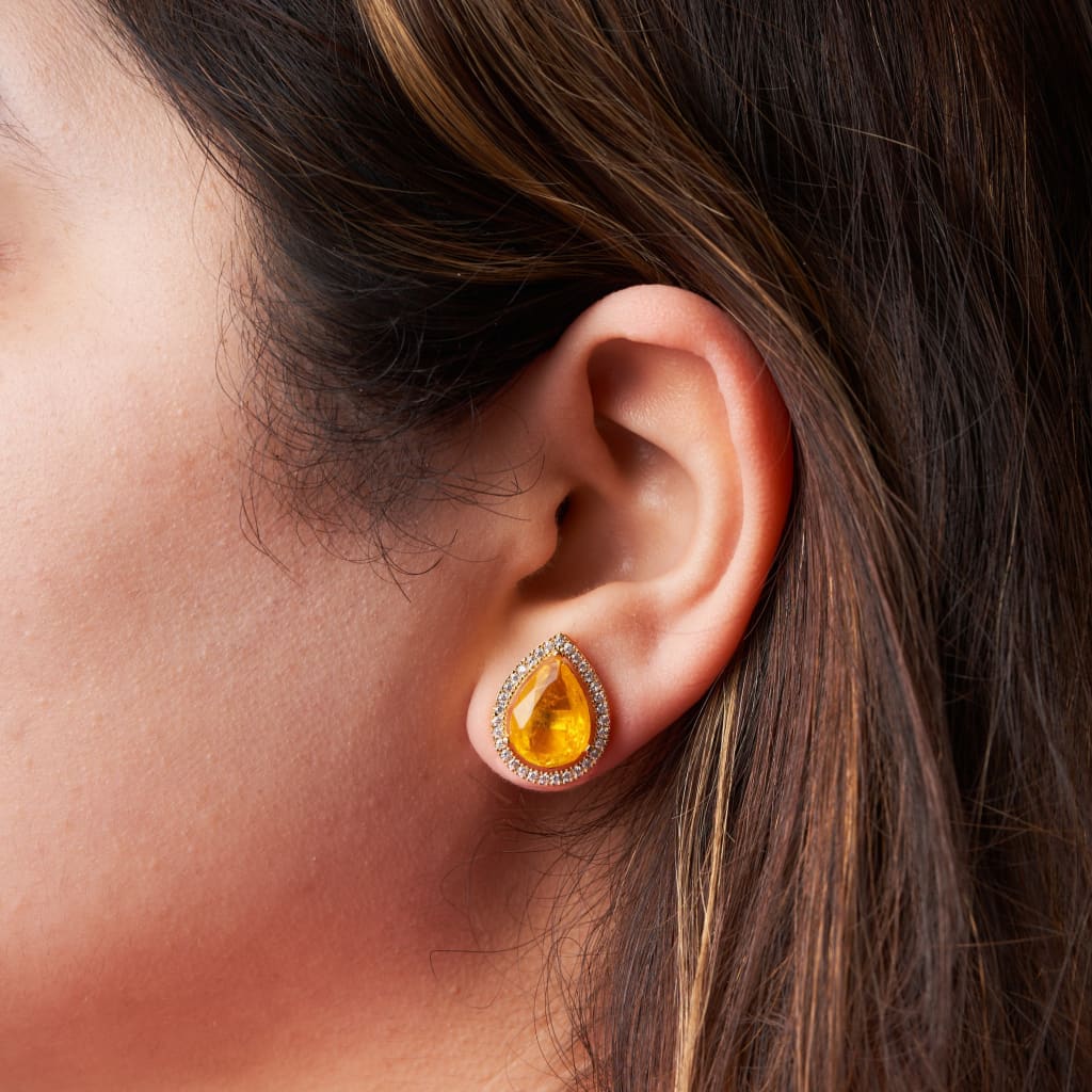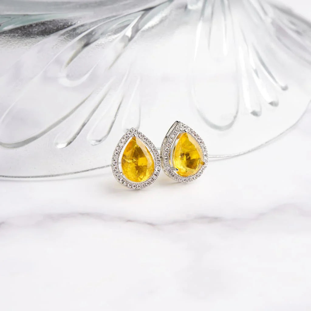 "Diamond Yellow Sapphire Zircon Studs"